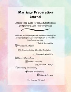 I know I’m not the only mom who dreams of seeing all her children grow into wise, godly adults — ready to love and serve the Lord in every season of life. That’s why I created this beautiful, Scripture-based guide to help teens and young adults think deeply about the kind of spouse they want to become and the kind of marriage they hope to build. Help your teen start preparing their heart for a God-centered marriage today!
